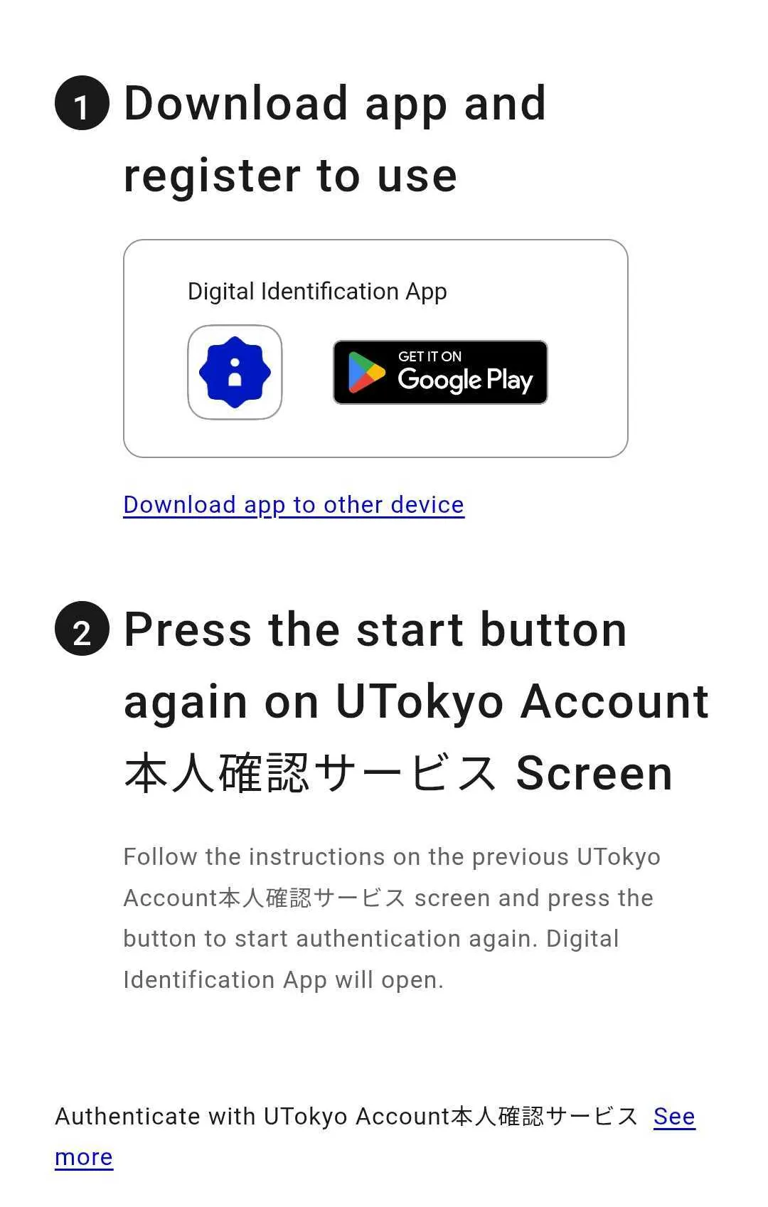 3. In the “Digital Authentication App” section, please confirm that the UTokyo Account associated with your name is displayed correctly.