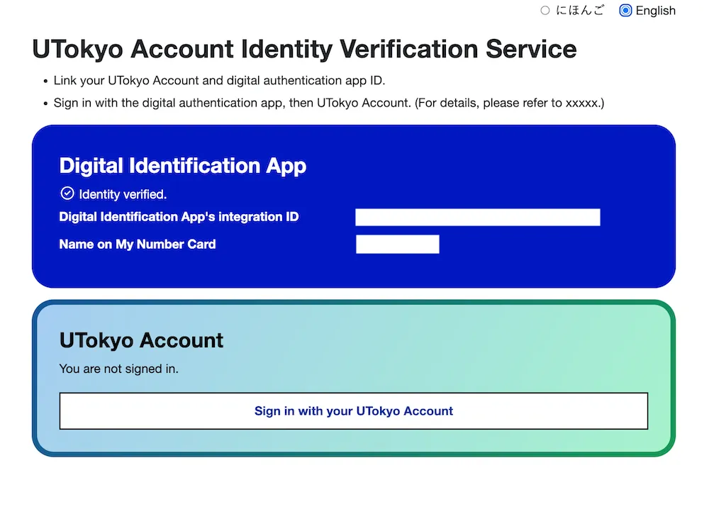 Checking on the UTokyo Account Identity Verification Service