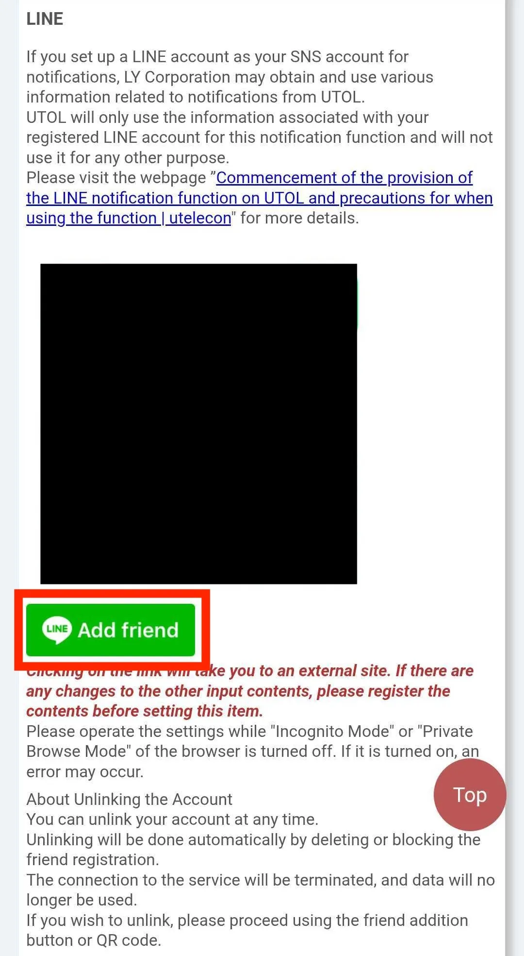 Please note that when you use LINE notification, various information related to the notification may be collected and used by LY Corporation. For more details, please refer to Precautions for Using the LINE Notification Function in UTOL