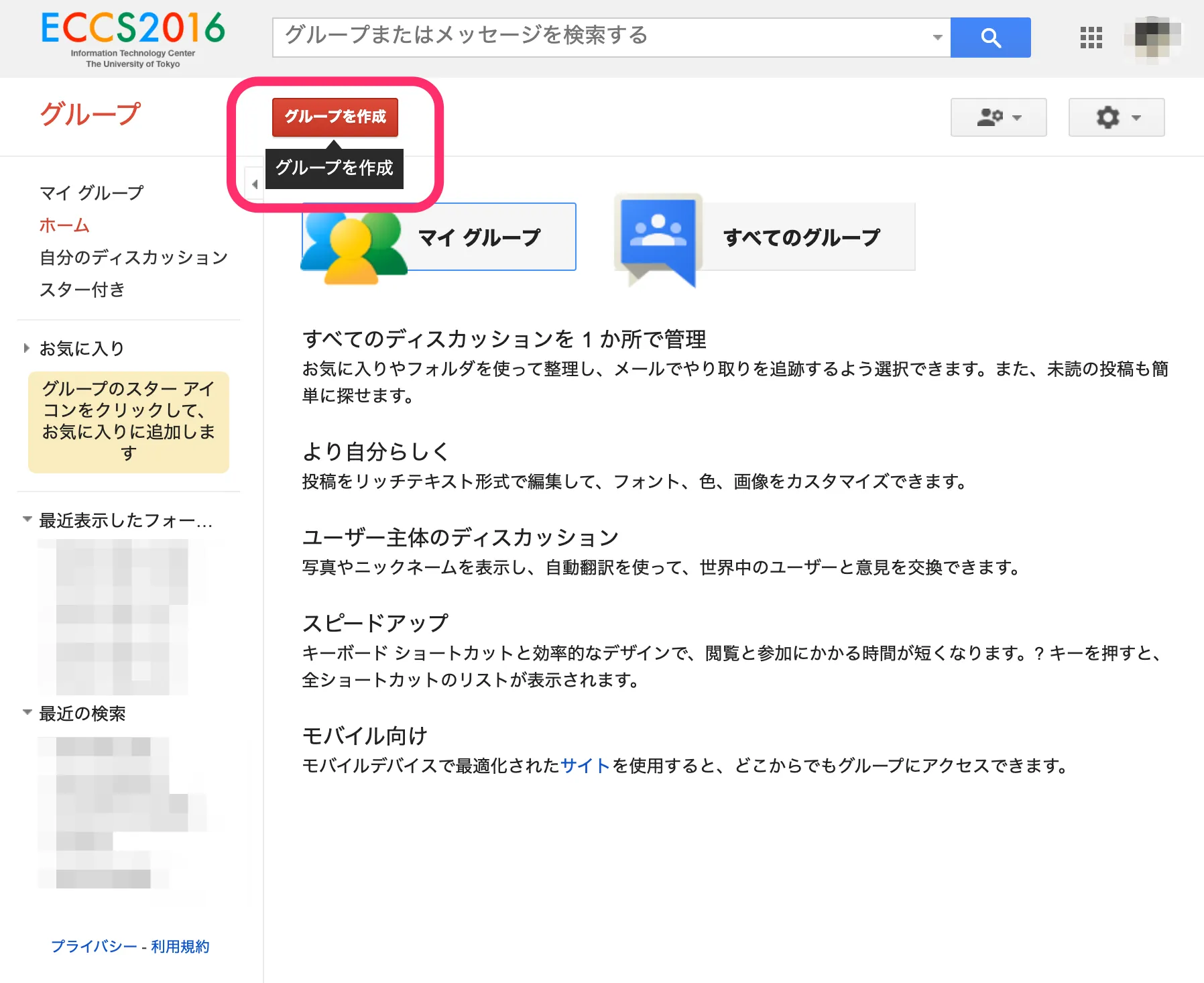 1. グループを作成してください.その際,いったん「ウェブ上のすべてのユーザー」に投稿権限を与えてください.