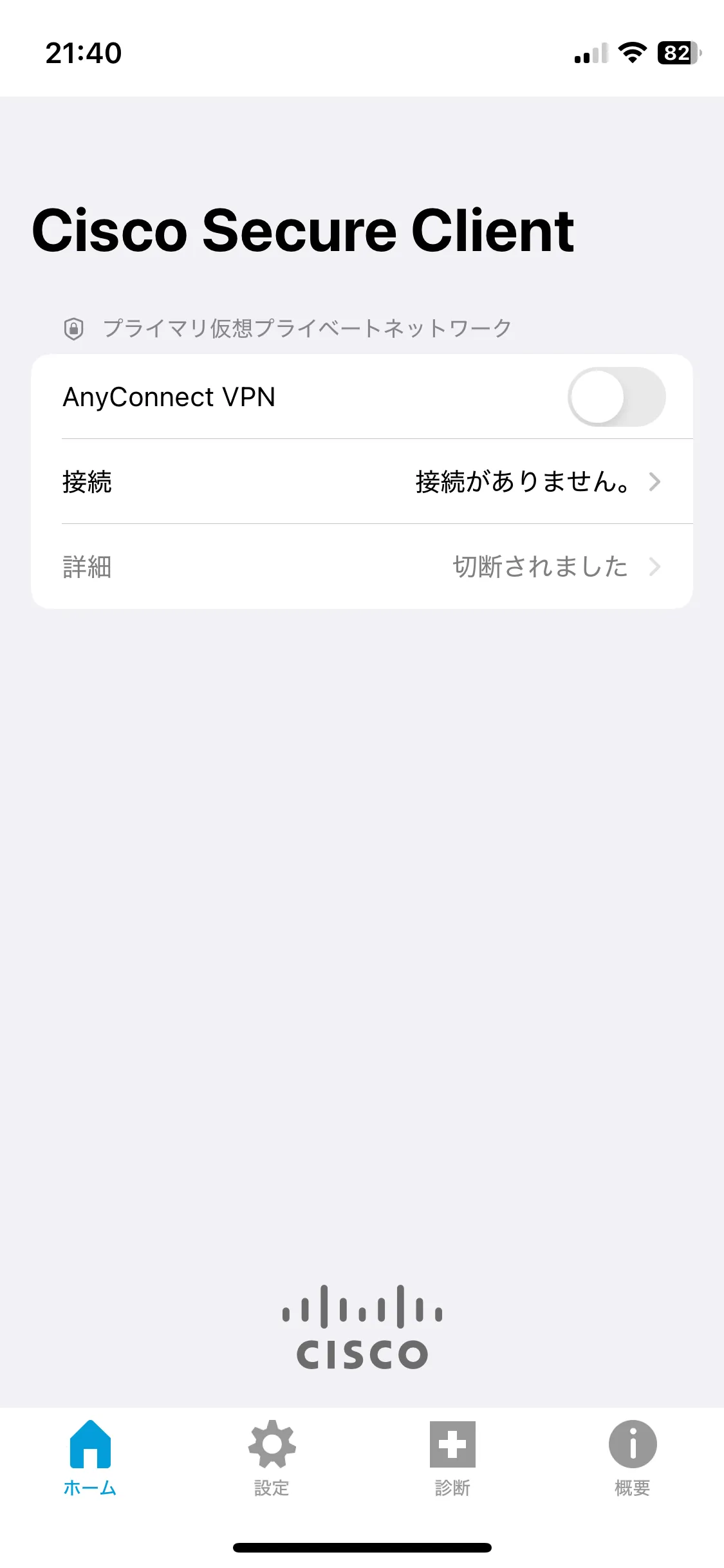 VPNを切断する際は,この画面のトグルボタンをタップして「詳細」が「切断されました」になったことを確認してください.