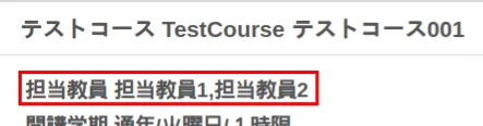 • 申請して作成したコースの場合,申請者の教員が担当教員として登録されます.